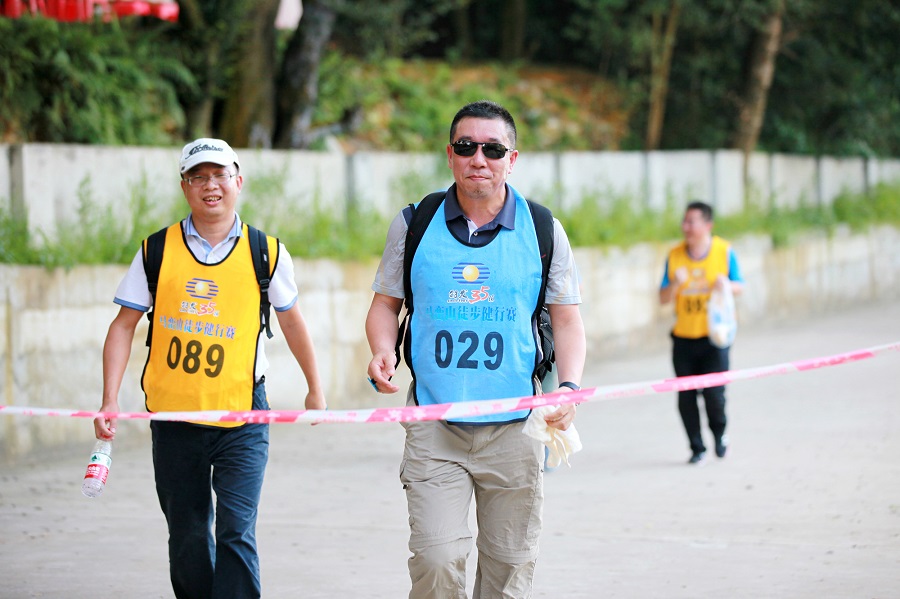 9月23日15:30,馬巒山腳下,秋日溫和,綠樹成蔭。六輛中巴車依次到達(dá),集團(tuán)俞磊副總、張瑞理副總帶領(lǐng)的總部員工和特發(fā)物業(yè)員工匯合,經(jīng)過短暫的休整和準(zhǔn)備,大家被隨機(jī)分成了紅、黃、藍(lán)、綠四只參賽隊(duì)伍。隨著一聲槍響,徒步健行比賽活動(dòng)開始,在一片歡快的笑聲中,隊(duì)員們邁著輕快的步伐,沿著徒步線路,一路向山上的終點(diǎn)進(jìn)發(fā)。本次徒步線路約7.4公里,個(gè)人成績?nèi)∧凶、女子前六名,團(tuán)隊(duì)成績?nèi)£?duì)內(nèi)前十名到達(dá)終點(diǎn)的隊(duì)員登山用時(shí)總和進(jìn)行排名。